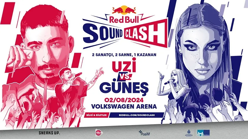 Gelmiş geçmiş en büyük müzik karşılaşmalarından biri olan Red Bull SoundClash, 2 Ağustos 2024’te müzikseverlerle buluşuyor. İBB Kültür AŞ'nin destekleriyle, Sneaks Up sponsorluğunda gerçekleşecek bu etkinlikte, son dönemin önde gelen isimlerinden Uzi ve Güneş, Volkswagen Arena'da iki farklı sahnede kapışacak ve kazanan seyirciler tarafından alkışmetre ile belirlenecek.