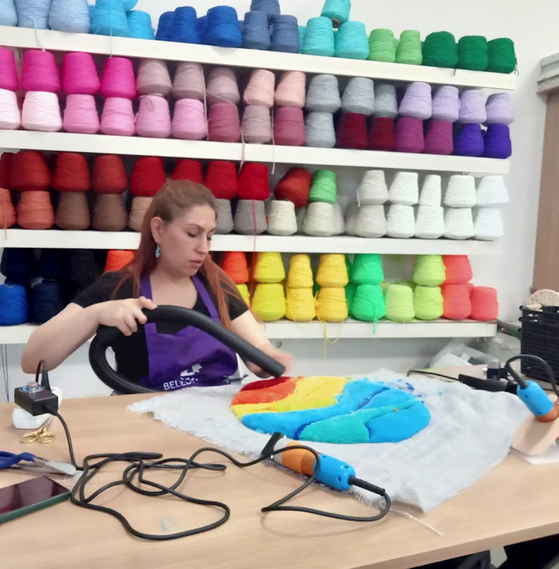 İzmit Belediyesi Kadın ve Aile Hizmetleri Müdürlüğü İZGİM Kadın Girişimciler Merkezi Tufting Atölyesinde yeni girişimcilerini yetiştiriyor