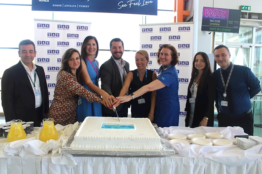 İzmir Adnan Menderes Havalimanı, Wizz Air’in Bükreş’ten gerçekleştirdiği uçuşu törenle karşıladı.