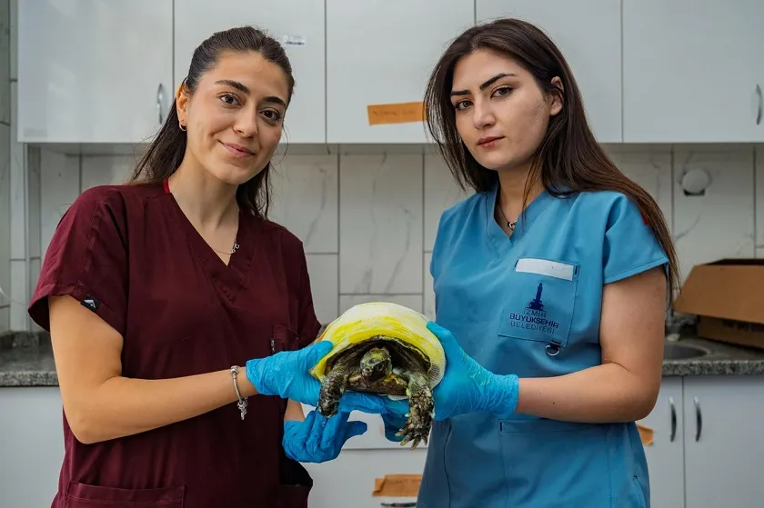 Tedavisi süren kaplumbağa, İzmir Doğal Yaşam Parkı’na sevk edildi. Tedaviye yanıt vermesi ve tam anlamıyla iyileşmesi halinde yaşam alanına geri dönecek.