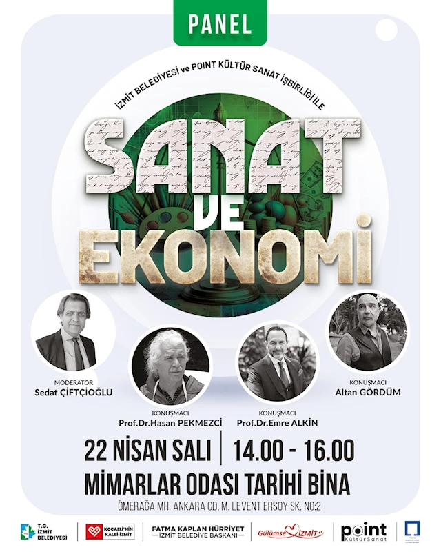 İzmit Belediyesi ve Point Kültür Sanat iş birliğiyle düzenlenecek “Sanat ve Ekonomi” paneli, sanatın kültürel boyutunun yanı sıra ekonomik değerine de dikkat çekerek, alanında uzman isimleri aynı çatı altında buluşturacak