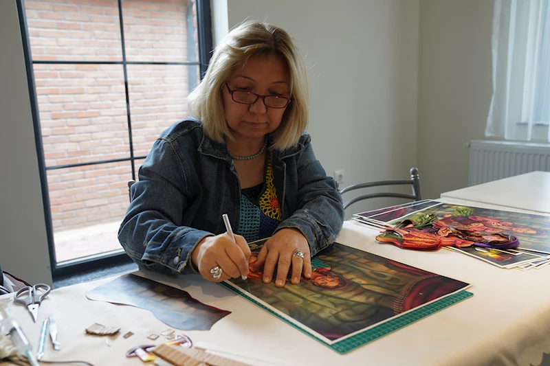 Tepebaşı Belediyesi Belde Evlerinde düzenlenen kağıt rölyef ve çini kursuna katılan kadınlar, el becerilerini geliştirirken sosyalleşiyor.