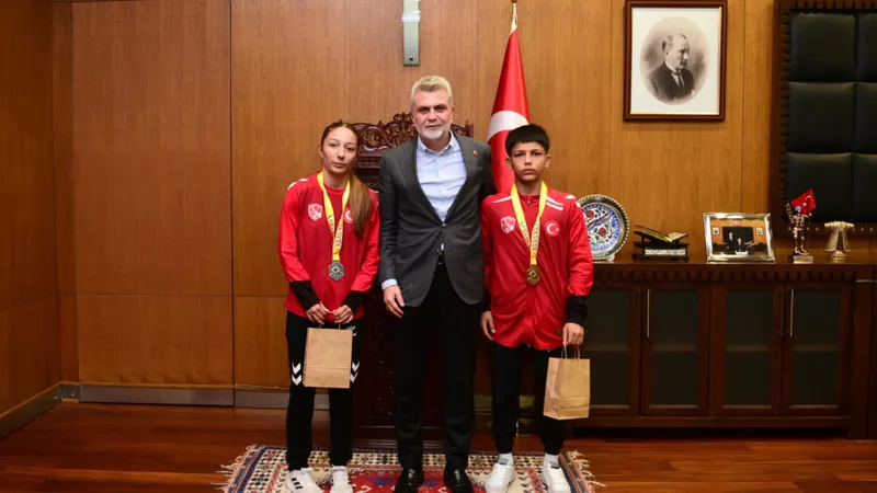Romanya'da düzenlenen U17 Güreş Balkan Şampiyonası'nda büyük başarı gösteren Şamil Şahan, Hatice Kazmacı ve İbrahim Bera Kıvrak, Kahramanmaraş Büyükşehir Belediye Başkanı Fırat Görgel tarafından makamında ağırlandı. Başkan Görgel, sporcuları tebrik ederek başarılarından duyduğu mutluluğu ifade etti.