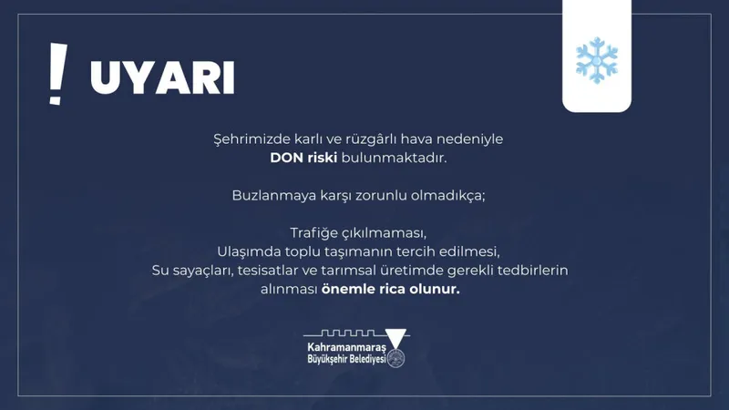 Büyükşehir Belediyesi, gece saatlerinden itibaren hava sıcaklıklarında ciddi düşüş beklendiğini, buzlanma ve don olaylarına karşı vatandaşları uyardı.