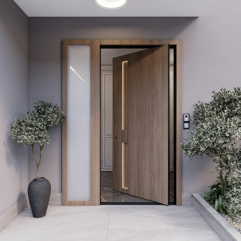 Modern tasarımı ve dayanıklı yapısıyla dikkat çeken Kale Pivot Kapı, villa girişlerine hem prestij hem de modern bir duruş kazandırıyor.