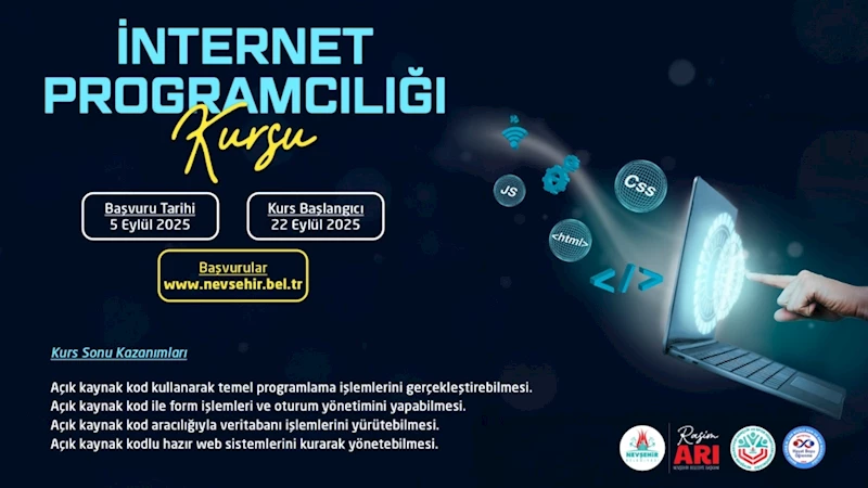 İnternet Programcılığı Kursu; Kurs 22 Eylül 2025 tarihinde başlayıp 11 Kasım 2025 tarihinde tamamlanacak. Kurs Pazartesi, Salı, Çarşamba, Perşembe ve Cuma günleri 13.00 - 16.00 ve 13.00 – 17.00 saatleri arasında yapılacak.