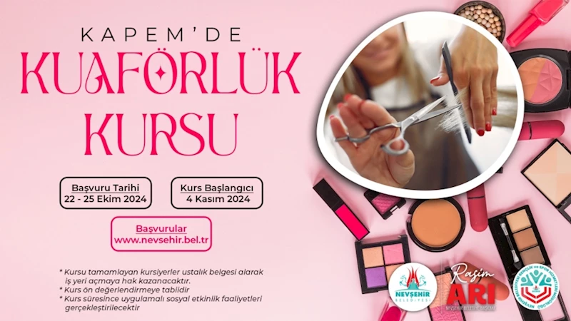 Nevşehir Belediyesi Kapadokya Eğitim Merkezi (KAPEM)’nde, açılacak olan Kuaförlük Kursu için kayıtlar başlıyor.