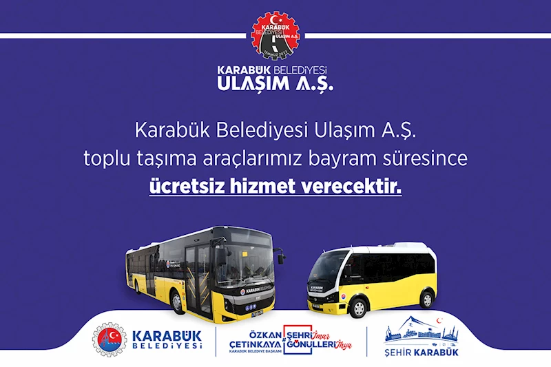 Karabük Belediyesi, Kurban Bayramı süresince vatandaşların bayram ziyaretlerini kolaylıkla gerçekleştirebilmesi amacıyla şehir içi toplu taşıma hizmetlerini ücretsiz sunacak. Ulaşım A.Ş. bünyesindeki otobüs ve minibüsler, bayram boyunca düzenli olarak hizmet verecek.