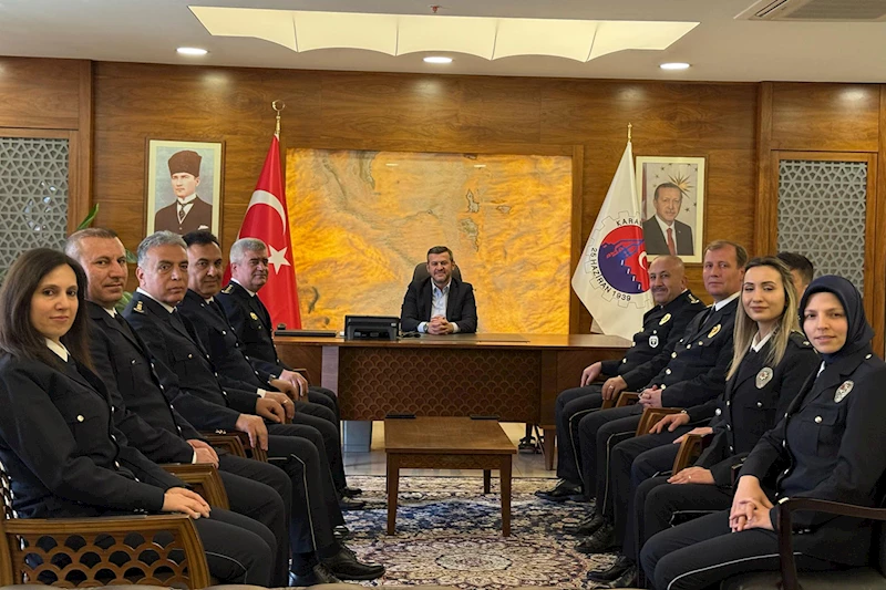 Türk Polis Teşkilatı’nın 180. kuruluş yıl dönümü dolayısıyla Karabük İl Emniyet Müdürü Mehmet Ali Hasan Köse ve Polis Meslek Eğitim Merkezi (POMEM) Müdürü Abdulkadir Kazan, Belediye Başkanımız Özkan Çetinkaya’yı ziyaret etti.