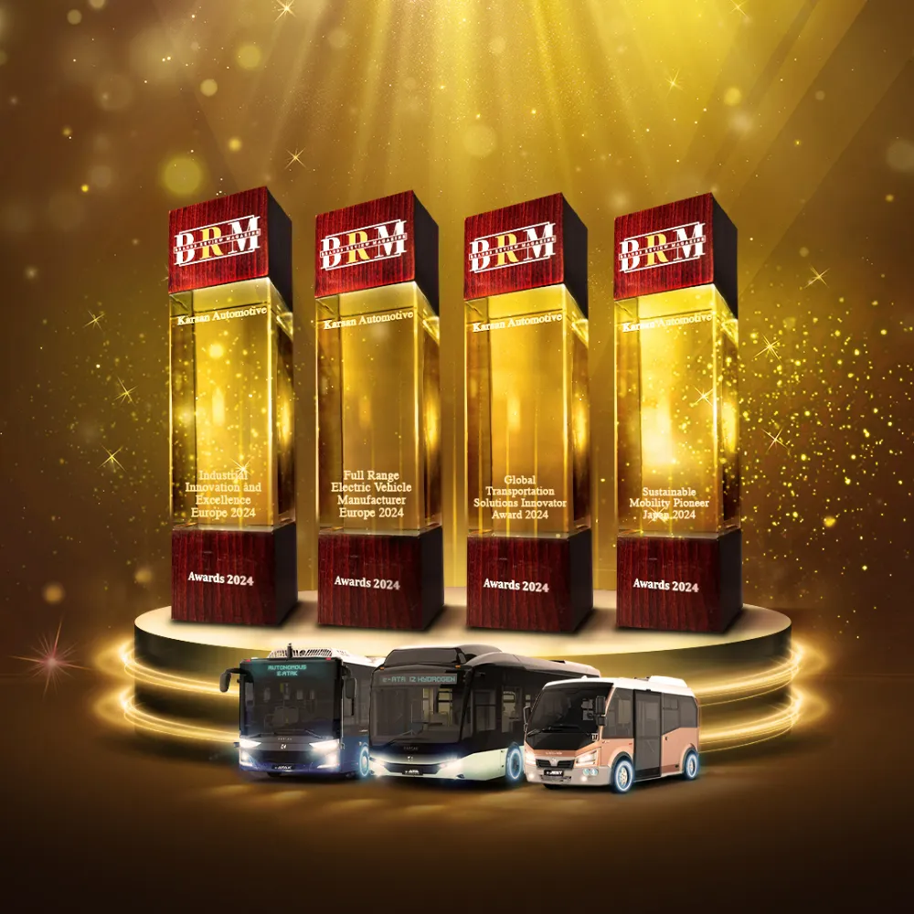 Avrupa’nın 6 metreden 18 metreye kadar full elektrikli ürün gamına sahip ilk ve tek markası olan Karsan, gelişmiş ürünleri ve sürdürülebilir üretim yapısıyla pazarın zirvesinde yer alıyor. Karsan e-JEST ve e-ATAK, Avrupa’da segmentlerinin 4 yıl üst üste en fazla tercih edilen modelleri olarak öne çıkmaya devam ediyor. Elektrik, otonom ve hidrojen olmak üzere 3 teknolojiyi birden üretebilen ve kullanıcıların hizmetine sunan Karsan, dünyanın en büyük e-mobilite şirketleri arasında hızla yükselişini sürdürüyor. Geliştirdiği yüksek teknolojiye sahip çevreci modelleriyle dikkat çeken Karsan, Brands Review Magazine Awards tarafından “Avrupa Endüstriyel İnovasyon ve Mükemmellik”, “Avrupa Tam Ürün Gamı Elektrikli Araç Üreticisi” ve “Küresel Ulaşım Çözümleri Yenilikçisi” seçilerek ödüllendirildi. Marka, toplu taşımada öncü bir konumda yer alarak, sürdürülebilir bir gelecek için üst düzey elektrikli araçlar ve yenilikçi çözümler sunmaya devam etmeyi hedefliyor.