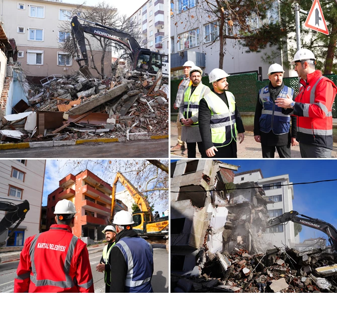 Kartal’da hem metruk yapıların yıkımına hem de kentsel dönüşüm kapsamında riskli olup yıkılmayan yapıların yıkımına hız vererek devam ediyoruz.