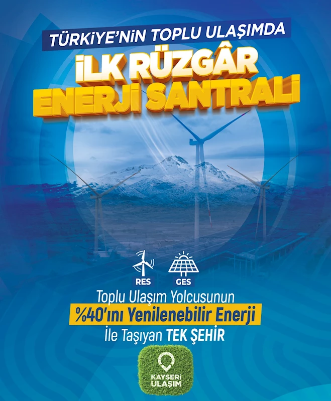 Temiz enerji, temiz gelecek anlayışı doğrultusunda Türkiye ve Kayseri’nin enerji geleceği için önemli adımlardan birisi olan RES projesi hızla hayata geçirildi. 21 megavatlık 3 türbinden oluşan RES projesi ile yıllık 60 milyon kilovat/saat elektrik elde edilmesi hedefleniyor. Yenilenebilir, temiz ve çevreci elektrik üretiminde Türkiye’nin toplu ulaşım sektöründeki ilk proje olarak nitelenen bu proje Kayseri’nin, toplu ulaşım yolcusunun yüzde 40’ını temiz enerjiden karşılayan tek şehir olmasını sağladı.