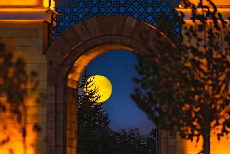 Kayseri'nin farklı noktaları, süper ay ışığında tabloyu andıran bir güzellik sergiledi.
