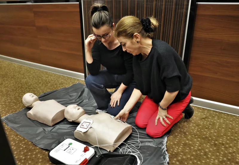 Program kapsamında; kalp durması halinde uygulanması gereken kalp masajı teknikleri ve otomatik eksternal defibrilatör (şok cihazı) kullanımı uygulamalı olarak anlatıldı. Ayrıca soluk borusuna yabancı cisim kaçması durumunda yapılması gereken müdahaleler detaylandırıldı.