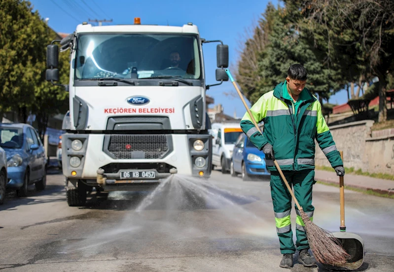 Keçiören Belediyesi ilçe genelinde bahar temizliği yapıyor. Temizlik İşleri Müdürlüğü ekipleri tarafından gece gündüz yürütülen temizlik çalışmaları kapsamlı şekilde devam ediyor. Birçok farklı noktada yürütülen temizlik çalışmalarıyla ilçe hem bayrama hazırlanıyor hem de bahar temizliği yapılıyor. Yapılan çalışmalar kapsamında caddelerden sokaklara, kaldırımlardan çöp konteynerlerine kadar ilçenin dört bir tarafı süpürülüp yıkanıyor. Sağlıklı bir kent ve temiz çevre için yoğun mesai harcayan ekipler sokakları tazyikli suyla yıkayarak pırıl pırıl hale getiriyor.