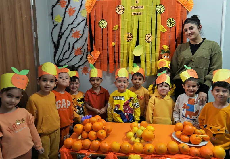 Etkinlik kapsamında çocuklar, öğretmenleri eşliğinde kendi portakallarını sıkarak taze meyve suyu hazırladı. C vitamininin bağışıklık sistemi açısından önemini öğrenen minikler, sağlıklı besin seçimleri konusunda da bilgilendirildi.