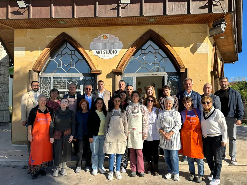 Kemer Belediyesi'nin destekleriyle faaliyet gösteren atölyede, 60 kursiyerin seramik eğitimi aldığı belirtildi. Başkan Topaloğlu ve beraberindeki heyet, kursiyerlerle selamlaşarak yapılan seramik çalışmalar hakkında bilgi aldı.
