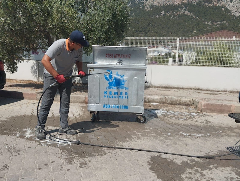 Kemer Belediyesi Temizlik İşleri Müdürlüğü ekipleri, Kemer genelinde bulunan çöp konteynerlerini sıcak ve ilaçlı suyla yıkayarak dezenfekte ediyor. Kemer Belediye Başkan Yardımcısı Semih Top, Kemer genelinde 3200 çöp konteyneri olduğuna dikkat çekerek, belediye ekiplerinin günde yaklaşık 80 konteyneri temizlediğini söyledi.