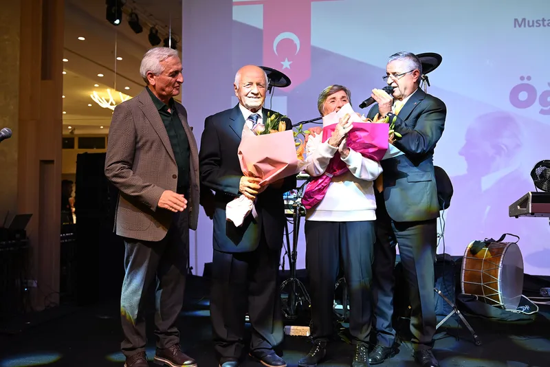Başkan Topaloğlu'nun Aydın Ortaklar Öğretmen Okulu'ndan Beden Eğitimi öğretmenleri Yonca Yurtçu ile Ünal Yurtçu da programa katılarak geceye renk kattı. Öğretmenleriyle sahneye çıkan Başkan Topaloğlu, öğrencilik yıllarına döndü.