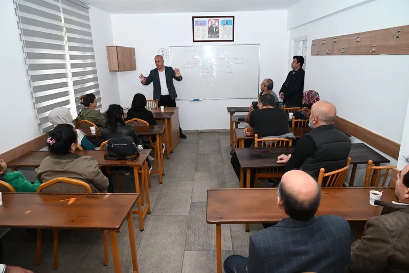 Kurs binasında gerçekleştirilen toplantıda Kurs Müdürü Suat Göv, velilere öğrencilerin genel durumu hakkında bilgi aktardı.