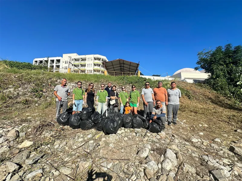 Uygulama Oteli'nin yanındaki dere içinde gerçekleştirilen temizlik etkinliğine, Kemer Belediyesi İklim Değişikliği ve Sıfır Atık Müdürü Serap Minta ve belediye personeli katıldı.