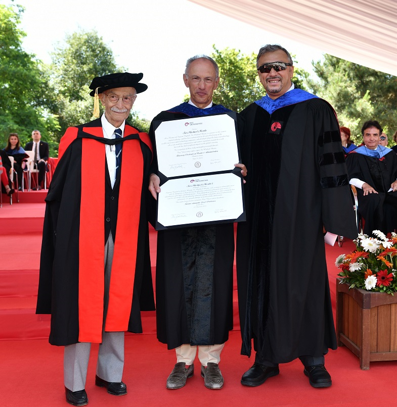 Koç Üniversitesi’nin 29. Mezuniyet Töreni’nde, gençleri hayata hazırlamak ve motive etmek üzere konuşma yapanlardan biri de küresel iş dünyasının önde gelen isimlerinden, yatırımcı Sir Michael Moritz oldu. Dünyanın en başarılı teknoloji şirketlerinin gelişimine yön veren yatırımlarla tanınan ve 2013’te İngiltere Kraliçesi tarafından şövalyelik unvanına layık görülen Michael Moritz, yeni mezunlarla hayat deneyimlerini paylaştı. Sir Michael Moritz’e, küresel ekonominin gelişimini 21. yüzyıla damga vuracak şekilde etkilediği için İşletme alanında Şeref Doktorası takdim edildi.