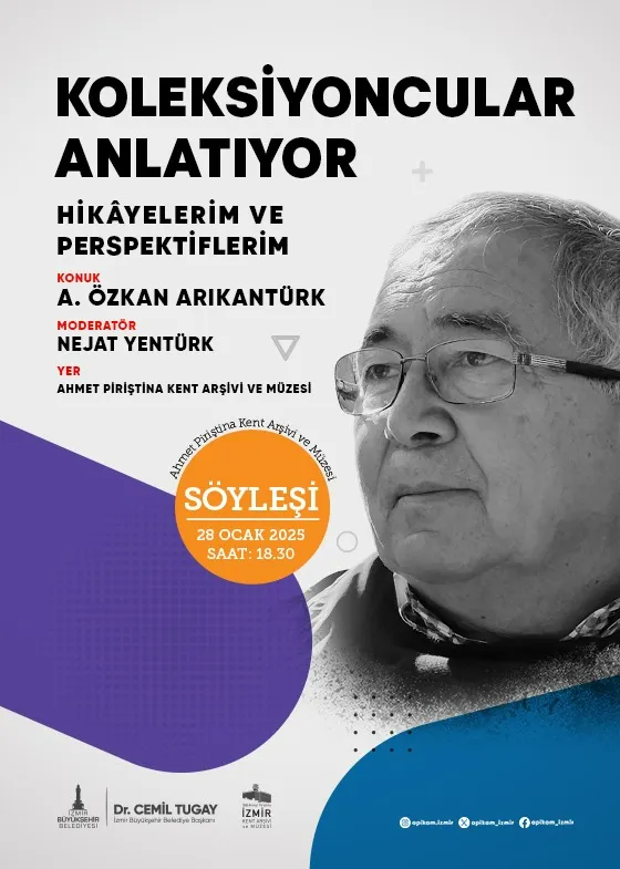 "Koleksiyoncular Anlatıyor: Hikâyelerim ve Perspektiflerim" söyleşi dizisi, İzmir Büyükşehir Belediyesi Kültür ve Sosyal İşler Dairesi’ne bağlı Kent Arşivi ve Müzeler Şube Müdürlüğü tarafından düzenleniyor. Söyleşi dizisi kapsamında ülkemizin önde gelen koleksiyoncuları İzmirlilerle bir araya gelerek kendi koleksiyonculuk yaklaşımlarını paylaşıyor. Dinleyiciler, koleksiyonculuğun bir yaşam tarzı ve bilimsel bir faaliyet olduğuna tanıklık ediyor.