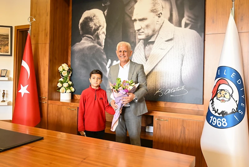 23 Nisan Ulusal Egemenlik ve Çocuk Bayramı kapsamında, Yunus Emre İlkokulu 4/B sınıfı öğrencisi Asım Kerem Temel, belediye başkanlığı koltuğuna oturdu.