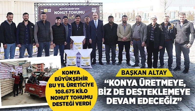 Konya genelinde kurak arazilerde alternatif ürün yelpazesini genişletmek için başlatılan “Kuru Tarım Alanlarında Nohut Yetiştiriciliğinin Yaygınlaştırılması Projesi” kapsamında başvuruları alınan çiftçilere ürünlerini teslim eden Başkan Altay, “Konya’da tarımsal üretimi ve çeşitliliği artırmak için yoğun bir gayret içerisindeyiz. 2014 yılından itibaren tarımsal desteklerde bulunuyoruz. Bugün de nohut tohumu dağıtmak için bir araya geldik. Buradaki amacımız kırsalda yaşayan vatandaşlarımızın özellikle ekilmeyen arazilerde üretim yapması için mali destekte bulunmak. Ayrıca nohut gibi hem ekonomik değeri yüksek suya az ihtiyacı olan bitkilerin kullanımını artırmayı amaçlıyoruz” ifadelerini kullandı.