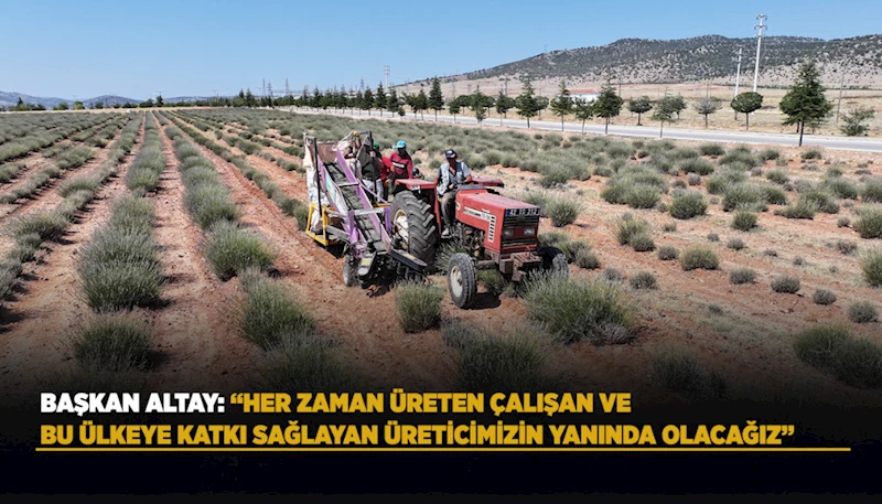 Kırsal bölgelerde alternatif ürün ekimini teşvik ettiklerini vurgulayan Başkan Altay, “Konya’da pilot bölge olarak belirlediğimiz Güneysınır ve Çumra ilçelerimizde toplamda 1,3 milyon metrekarelik alanda 2 milyon adet lavanta fidesini, yüzde 85’e kadar hibe desteği ile lavanta yetiştiriciliği eğitimi alan ve bu alanda üretim yapmak isteyen çiftçilerimize dağıttık. Ayrıca üreticilerimize lavanta fide dikim ve hasat makineleri hibe ederek tarımsal mekanizasyon desteği sağladık. Güneysınır’da kurduğumuz damıtma tesisimizde ise üreticilerimiz, lavanta ve diğer tıbbi aromatik bitkilerin yağlarını çıkarabiliyor. Her zaman üreten, çalışan ve bu ülkeye katkı sağlayan üreticimizin yanında olacağız” şeklinde konuştu.