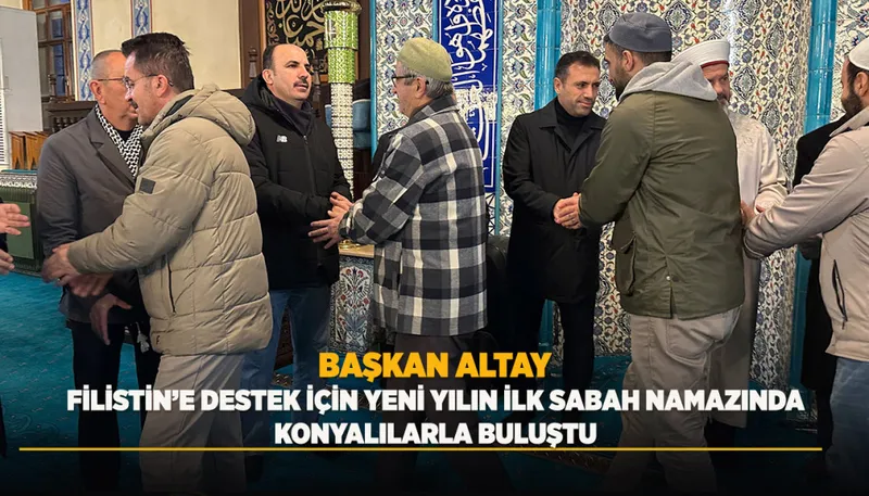 Konya Büyükşehir Belediye Başkanı Uğur İbrahim Altay, yeni yılın ilk sabahında hemşehrileriyle namazda buluşarak, Filistin için dua ettiklerini belirtti. Altay, Filistin için sessiz kalınmadığını ve unutulmadığını bir kez daha ifade ettiklerini söyledi.
