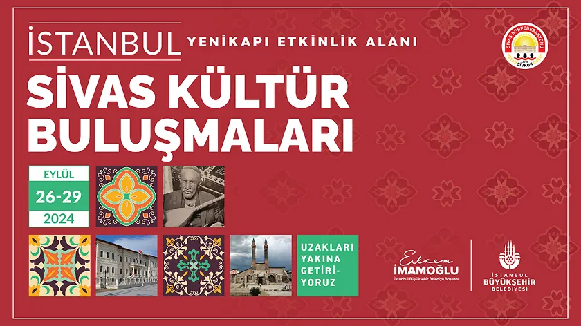 Yenikapı Etkinlik Alanı’nda gelenekselleşen ‘Kültür Buluşmaları’ Sivas ile devam ediyor. 26-29 Eylül tarihleri arasında gerçekleşecek Sivas Kültür Buluşmalarında, konserlerden halk oyunu gösterine kadar pek çok etkinlik olacak.