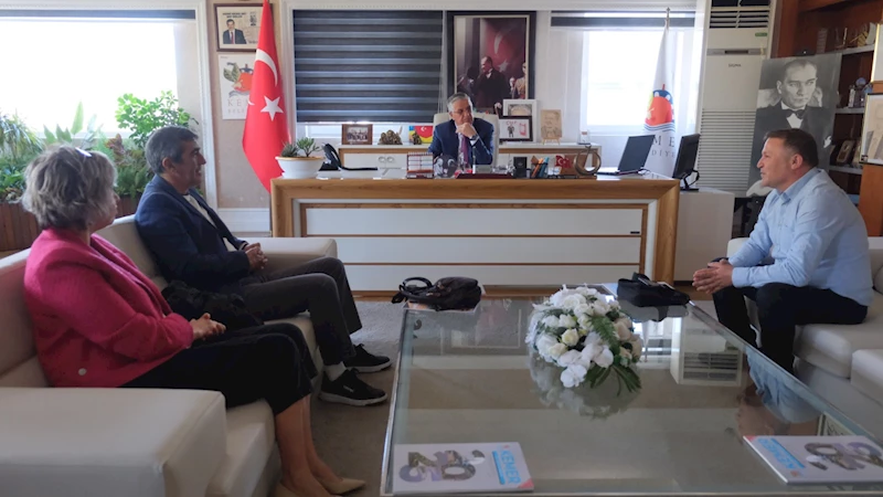 07 Gazi Spor Kulübü Voleybol Sorumlusu Ali Güler, Antarenör Timur Kapsal ve İdari Sorumlu Huriye Kapsal, Kemer Belediye Başkanı Necati Topaloğlu'na makamında nezaket ziyaretinde bulundu.