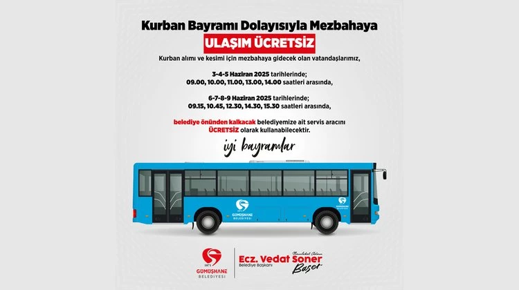 Konuyla ilgili yaptığı açıklamada, bayramların toplumsal dayanışmanın en güzel örneklerinin yaşandığı günler olduğunu belirten Belediye Başkanı Vedat Soner Başer, “Gümüşhane Belediyesi olarak, Kurban Bayramı’nda vatandaşlarımızın hayvan pazarına ulaşımını kolaylaştırmak amacıyla ücretsiz servis hizmeti sunuyoruz. Ayrıca, bayram süresince belediye otobüslerimiz de dört gün boyunca ücretsiz olarak hizmet verecek. Bayram boyunca ulaşımda herhangi bir aksaklık yaşanmaması için ekiplerimiz sahada görevlerinin başında olacak. Çünkü biz, bayramların mesafeleri kısaltan, gönülleri birleştiren özel zamanlar olduğuna inanıyoruz. Kimsenin "nasıl giderim?" diye düşünmesini istemiyoruz. Büyüklerin elleri öpülsün, akrabalar kucaklansın, komşular arasında bayramlaşmalar artsın istiyoruz. Toplu taşıma araçlarımızın ücretsiz hizmet vermesi, Gümüşhane’de bayramın ruhuna uygun bir buluşma ve kaynaşma ortamı oluşturacaktır. Herkesin eşit, erişilebilir ve zahmetsiz bir bayram geçirmesi bizim için çok kıymetli. Tüm hemşehrilerimize huzur, sağlık ve mutluluk dolu bir bayram diliyorum.” şeklinde konuştu.