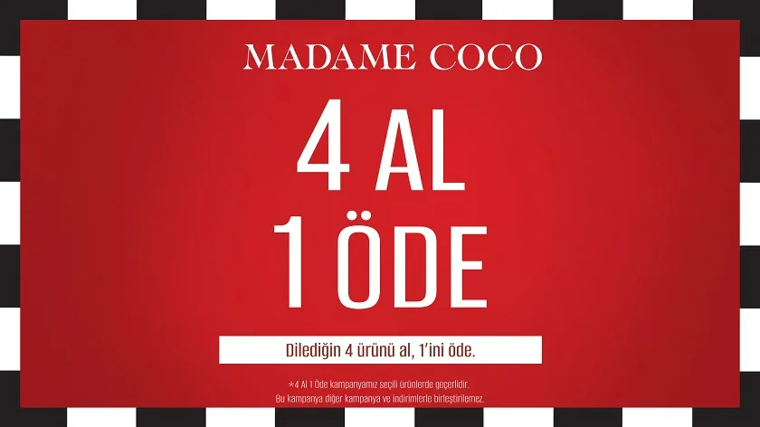 Madame Coco, 19-22 Eylül tarihleri arasında tüm mağazalarında ve online satış platformu madamecoco.com’da düzenleyeceği 4 Al 1 Öde kampanyasıyla evlerinize şıklık katmaya davet ediyor!