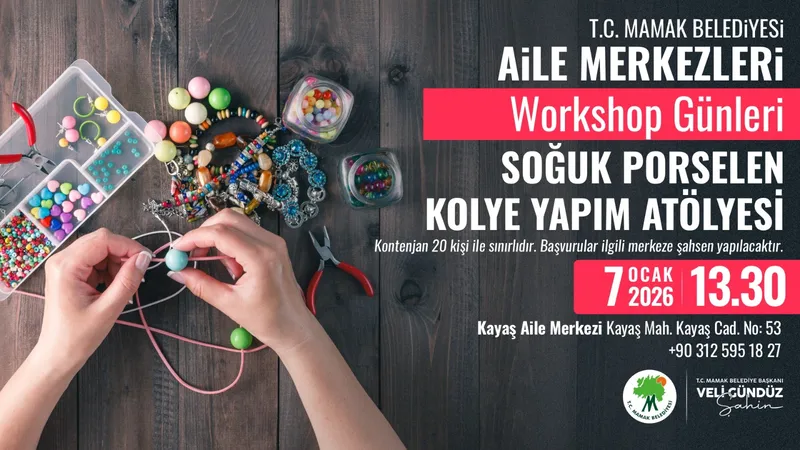 Mamak Belediyesi, 7 Ocak 2026 Çarşamba günü Zirvekent ve Kayış Aile Merkezlerinde geri dönüşüm ve el sanatları atölyeleri düzenleyecek. Kot pantolondan çanta dikimi ve soğuk porselen kolye yapımı atölyelerine sınırlı kontenjanla k