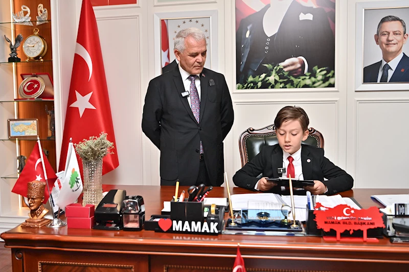 Törenin ardından, Mamak Belediye Başkanı Veli Gündüz Şahin, makamında minik misafirlerini ağırladı. 23 Nisan’ın en güzel geleneklerinden biri olan başkanlık koltuğunun çocuklara devri, bu yıl da anlamlı anlara sahne oldu. 14 yaşındaki Muhammed Eren, 8 yaşındaki Ata ve Başkan Şahin’in torunu 6 yaşındaki Kenan, sırayla başkanlık koltuğuna oturarak hayallerini ve Mamak için dileklerini paylaştı.