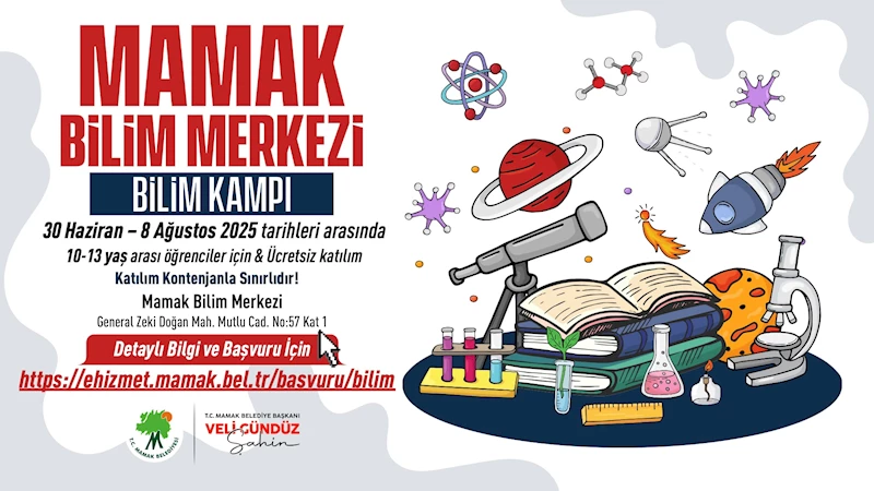 30 Haziran – 8 Ağustos tarihleri arasında gerçekleştirilecek kamp süresince katılımcılar, Doğa Bilimleri, Teknoloji, Matematik, Tasarım, Keşif ile Astronomi ve Havacılık atölyelerinde eğitim alacak. Alanında uzman eğitmenler eşliğinde yürütülecek çalışmalarla çocukların bilimsel düşünme becerilerinin geliştirilmesi hedefleniyor. Kampa katılmak isteyenler için son başvuru tarihi 27 Haziran. Başvurular, Mamak Belediyesi’nin resmi internet sitesi üzerinden online olarak alınacak.