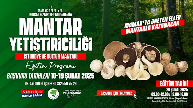 Tekniğe uygun bir kompost yapımından hasat sonrası değerlendirilmesine kadar mantar üretim sürecinin temel noktalarına dair bilgilerin yer alacağı eğitim kapsamında mantar yetiştiriciliğinin temel bilgilerinden üretim tesisi kurulumuna, hasat sürecinden pazarlama yöntemlerine kadar geniş bir yelpazeyi kapsayarak katılımcıların adım adım mantar yetiştirmeye başlamalarına olanak sağlanacak. Mamak Belediyesi Kırsal Hizmetler Müdürlüğü Ziraat Yüksek Mühendisi Ayşe Halavut ve Ziraat Teknikeri Selda Arıkan’ın vereceği eğitimler, bölge insanına alternatif iş imkanı sunarken ve meslek edindirme ve bilgi ve becerilerinin artırılmasını da sağlayacak. Ankara,Mamak Belediyesi belediye365.com