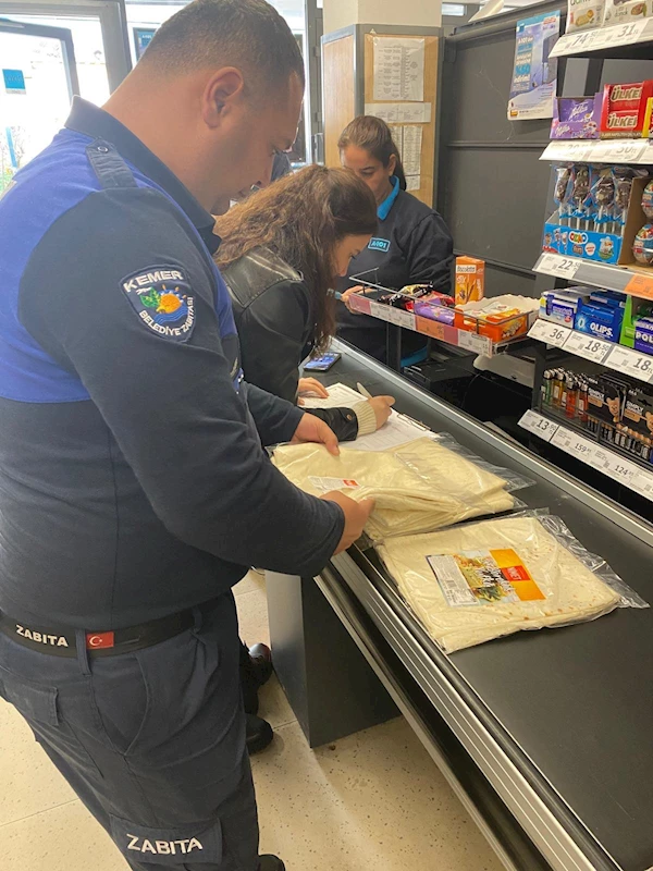 Kemer Belediyesi Zabıta Müdürlüğü ekipleri, Tekirova Mahallesi'nde bulunan marketlerde denetim yaptı.
