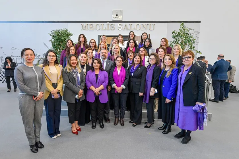 İzmir Büyükşehir Belediye Meclisi’nin CHP'li kadın meclis üyeleri, 8 Mart Dünya Emekçi Kadınlar Günü kapsamında basın açıklaması yaptı. Kadın meclis üyeleri adına konuşan CHP Grup Sözcüsü Elvin Sönmez Güler, siyasette var olmanın, yalnızca temsil edilmek olmadığını kaydederek “Siyasette var olmak, bu düzenin kurallarını değiştirmektir. Kadınlar siyasete girdiğinde siyaset değişir. Ezberler bozulur, adalet büyür, ses yükselir, gerçek demokrasi filizlenir. İşte bu yüzden her fırsatta önümüze yeni duvarlar örenler bilsinler ki, biz o duvarları yıkmaya geldik. Bu ülkenin geleceğini, bir avuç erkeğin kararlarına ya da onların gölgesinde alınan kararlara terk etmeyeceğiz. Belediyelerde, meclislerde, meydanlarda, sokaklarda kadınların sesi yükseldikçe, eşitliğin, adaletin ve özgürlüğün sesi yükselecek. Kadınlar durursa hayat durur; kadınlar kazanırsa herkes kazanır. İzmir Büyükşehir Belediyesi Meclisi’nin kadın üyeleri olarak buradan ilan ediyoruz; hiçbir yere gitmiyoruz. Siyaseti değiştireceğiz, hayatı değiştireceğiz, bu düzeni değiştireceğiz” diye konuştu.