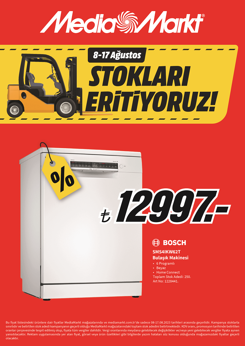 MediaMarkt, geleneksel olarak düzenlediği MediaMarkt'ta Stokları Eritiyoruz kampanyasına devam ediyor. Tabletten elektrikli süpürgeye, bulaşık makinesinden buzdolabına kadar çeşitli kategorilerdeki ürünler avantajlı fiyat ve cazip ödeme koşullarıyla satışa çıkıyor.