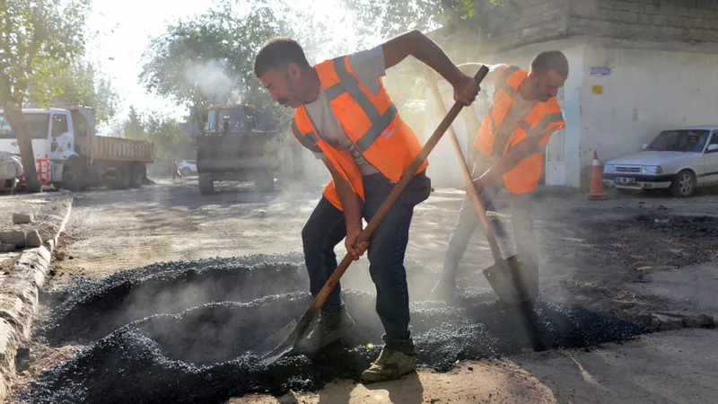 KASKİ, Dulkadiroğlu Mehmet Akif Mahallesi’nde altyapı imalatlarında bozulan yol yüzeylerini sıcak asfaltla kaplıyor.
