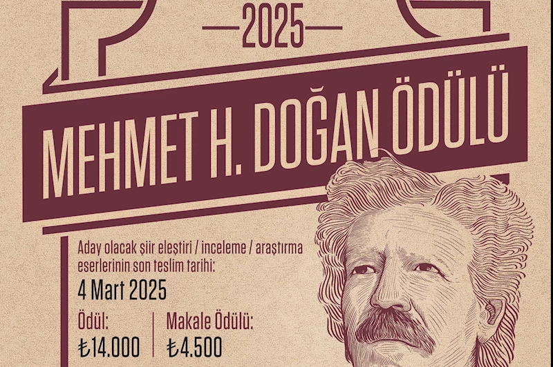 Çağdaş Türk şiirinin önemli eleştirmenlerinden biri olan Mehmet H. Doğan’ın anısını yaşatmak, Türkçe’de yayımlanmış şiir eleştirilerinin önemine dikkat çekmek amacıyla düzenlenen Mehmet H. Doğan Ödülü’nde süreç başladı. Nilüfer Belediyesi Kütüphane Müdürlüğü’nün bu yıl 9'uncusunu düzenlediği ödül, Türkçe şiir eleştirisi, inceleme ve araştırma eserlerine verilecek. Ödüle değer görülen eseri, Asuman Susam, Gültekin Emre, Haydar Ergülen, Metin Celâl, Nilay Özer, Orhan Alkaya, Orhan Tekelioğlu’ndan oluşan seçici kurul belirleyecek.