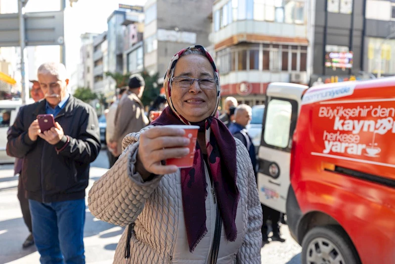 Büyükşehir’in kaynar ikramında bulunduğu vatandaşlardan Yılmaz Ömür, Başkan Vahap Seçer’e teşekkürlerini ileterek, “Bu, insanlığa bir hizmettir. Kaynar, şifalı ve insanın hem içini ısıtan, hem de ferahlık veren bir içecek” diye konuştu.