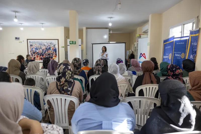 Akdeniz Rotary Kulübü 2025-2026 Dönem Başkanı Hülya Tepe Güner, 'Ev Kadınları Ufuk Geliştirme Projesi'nin geleneksel bir proje olduğunu ve özellikle ev kadınlarının ihtiyaç duyduğu konuların belirlendiğini söyledi. Güner, "Kalp sağlığı, gıda güvenliği, kanserojen maddeler, geri dönüşüm, otizm ve e-ticaret gibi önemli konularda kadınların ufkunu açmak, onları bilinçlendirmek için sunumlar yaptık. Projemizi son iki dönemdir Büyükşehir Belediyesi'nin katkılarıyla ve dezavantajlı bölgelerde yürütüyoruz" ifadelerini kullandı.