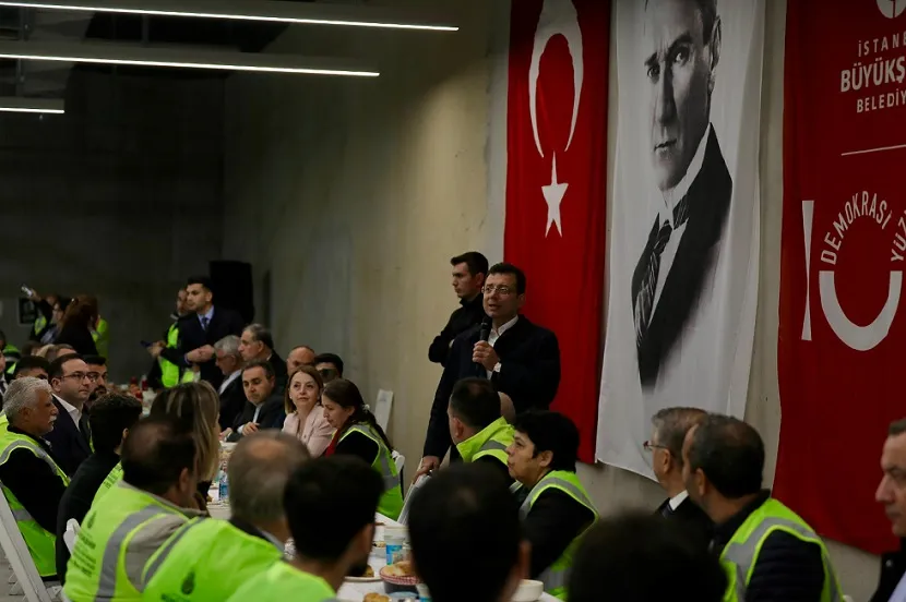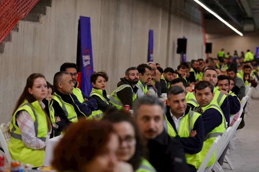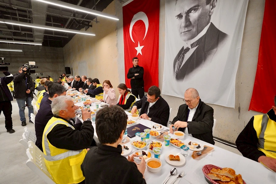 İstanbul Büyükşehir Belediye (İBB) Başkanı Ekrem İmamoğlu, Göztepe-Ataşehir- Ümraniye metro hattında çalışan 300’den fazla emekçiyle iftar sofrasında buluştu. CHP milletvekili Ali Gökçek ve CHP Ataşehir Belediye Başkan adayı Onursal Adıgüzel de hattın Ataşehir şantiyesinde, yer altında düzenlenen iftar programında İmamoğlu’na eşlik etti. Konuşmasına, hatta emeği geçen tüm paydaşlara teşekkür ederek başlayan İmamoğlu, “Bugün biz burada sizin çalışma ortamınızı hissetmeye ve sizlerin sofrasında bulunmayı kendimize seçtik. Ne mutlu bize. Çok özel bir hizmet yapıyorsunuz. İstanbul'umuza belki de tarihinin en önemli hizmetlerini sunan projelerin başında, metro yapıları geliyor. Metro yapıları yapmak teknolojisiyle, mühendisliğiyle, maliyetiyle her aşaması ayrı bir titizlik gerektiriyor. Bu manada topyekun, bütüncül yapı için emeği geçen herkesin ortaya koyduğu performans İstanbul ve İstanbul halkı için önemli” dedi.