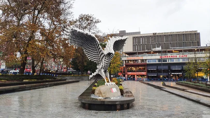 Mimar Sinan Güzel Sanatlar Üniversitesi Heykel Bölümü Başkanı Prof. Bülent Çınar tarafından 2,5 aylık bir çalışma sonucunda tamamlanan heykel, 100. yıllık çağdaş Türkiye’nin dinamik yapısını çağrıştıracak şekilde tasarlandı. Heykel, yaklaşık 400 metre 316 kalite paslanmaz çelik boru, lazer kesim teknolojisi ile kesildikten sonra 923 adet boru, lazer kaynağı ile bir araya getirildi. Toplam ağırlığı 1400 kilogram olan heykel yine meydanı kaplayan granitler ile aynı ocaktan seçilmiş 6000 kilogram ham granit bir kayaya sabitlendi.