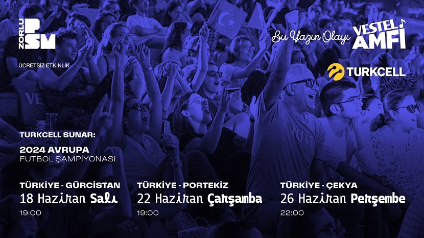 Zorlu PSM sahnelerinde dünyaca ünlü isimleri ağırlamaya devam ederken, Turkcell’in katkılarıyla 2024 Avrupa Futbol Şampiyonası heyecanı, sevilen açık hava mekanı Vestel Amfi’de!