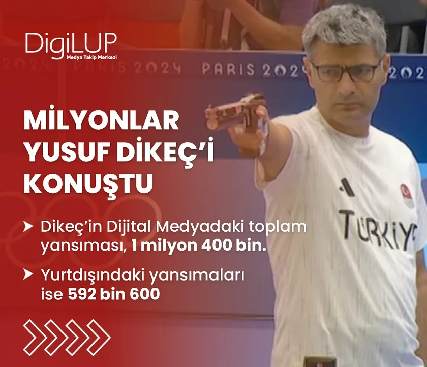 Medya Takip Merkezi (MTM)’nin profesyonel dijital medya izleme platformu DigiLUP sonuçlarına göre, dijital medyada Yusuf Dikeç ile ilgili milyonlarca haber ve yorum yapıldı. Atış yaptığı andaki duruş tarzı da birçok görselde yer aldı.
